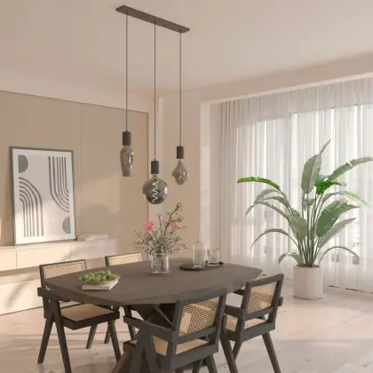 Calex Retro Pendelarmatuur Cordset Rechthoekig Metaal Zwart |incl. kabel 2 Meter - Geschikt voor 3xE27