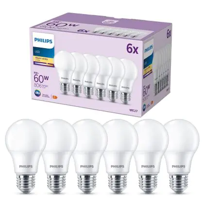 | Fabrikantnaam | Box 6 stuks - Philips LED Lamp Mat - 60 W - E27 - Warmwit licht | |